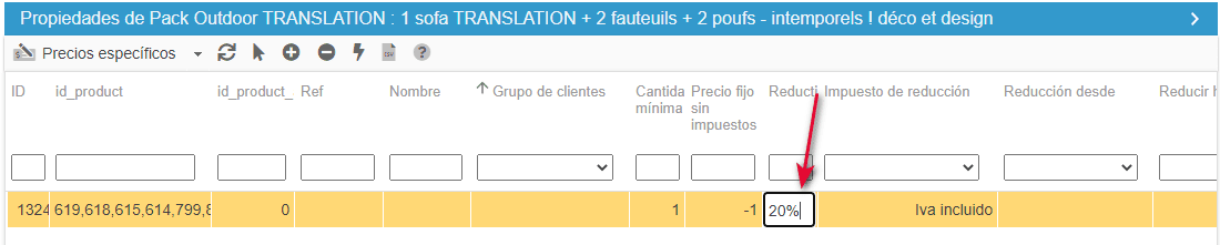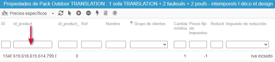 En la línea creada, aparecerán los ID de todos los productos seleccionados