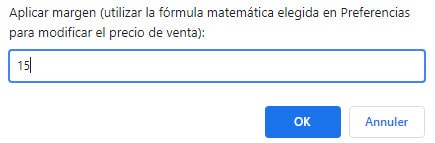 En la ventana que se muestra, introduzca el valor del margen que desea aplicar al producto seleccionado, o a varios productos seleccionados