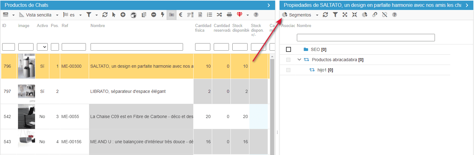 o utilice la cuadrícula de Segmentos en la columna de Propiedades (a la derecha), independientemente de la interfaz.