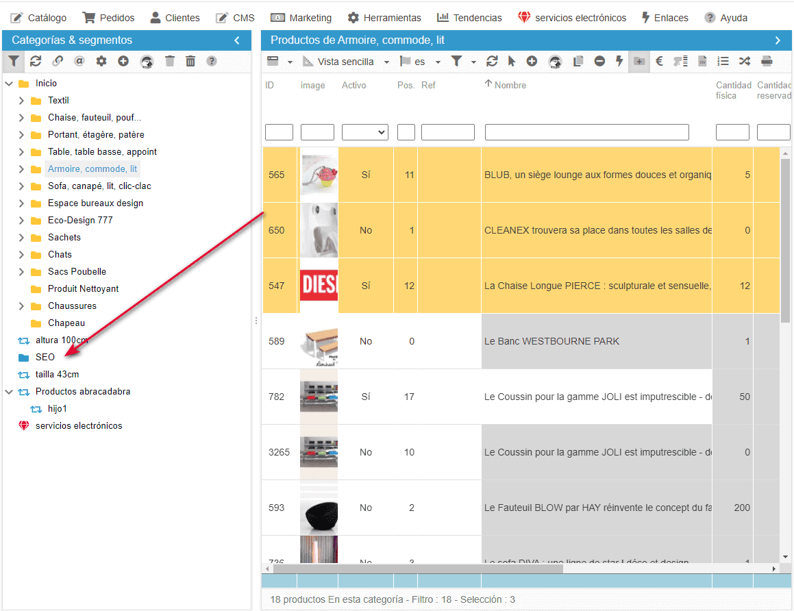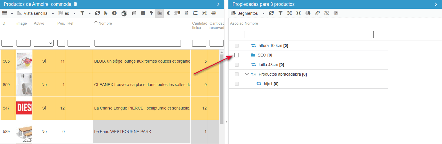 Taking the example of the Catalog interface, you can display your products in the central column and drag/drop them manually into the segment.