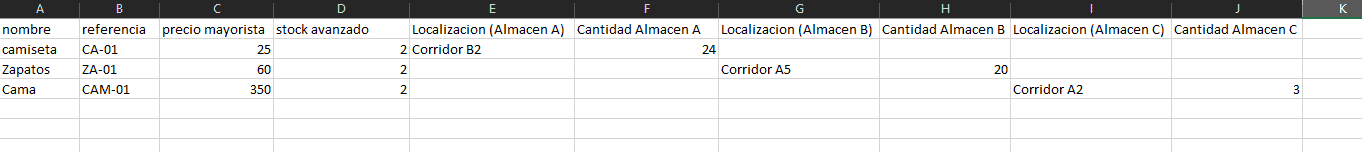Una vez terminada la importación, sus productos estarán creados y la gestión avanzada de stocks activada. Los productos estarán vinculados con el almacén especificado en el archivo CSV. Las cantidades y los emplazamientos se añadirán igualmente a los almacenes especificados en el archivo CSV.
