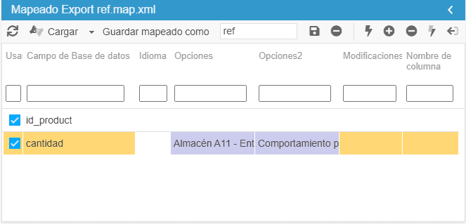 Su mapeado de exportación debe incluir el campo "Cantidad" para cada almacén si tiene más de uno.