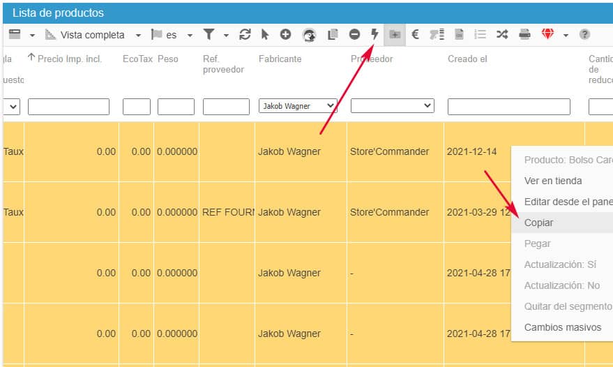 En la interfaz de Store Commander, muestre por ejemplo los productos de un mismo fabricante en la vista Referencia o la vista Completa.