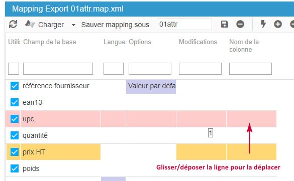 Vous pouvez aussi renommer les intitulés des colonnes si nécessaire (très utile pour les flux sur les places de marchés) :