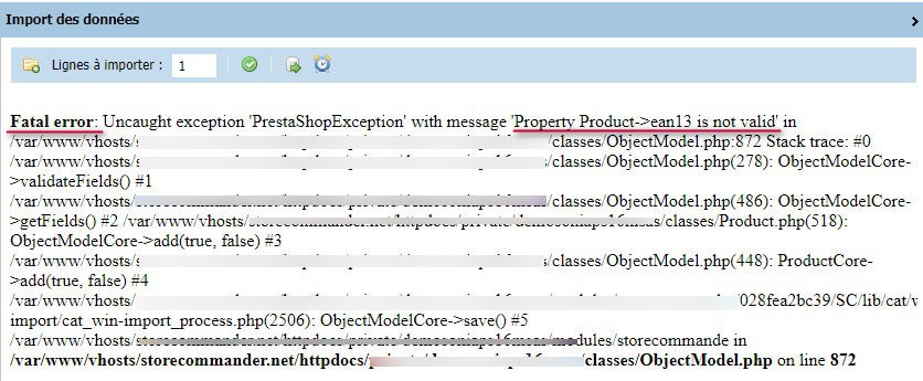Pour solutionner le problème, il faudra tout d'abord vous référer au forum dédié aux messages d'erreur d'import sur lequel la plupart des erreurs sont répertoriées : https://www.storecommander.com/support/fr/230-erreurs-connues