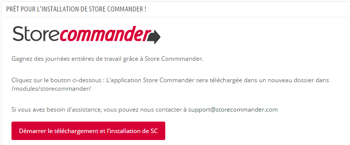 L'installation est terminée, vous pouvez lancer le module en cliquant sur 'Démarrer Store Commander'