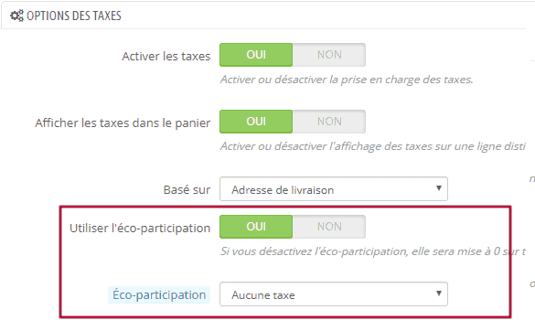 Si vous utilisez une version PrestaShop inférieure à 1.5, la colonne Ecotaxe s'affiche dans l'interface de Store Commander lorsque l'option correspondante est activée dans le backoffice de PrestaShop > Paiement > Taxes