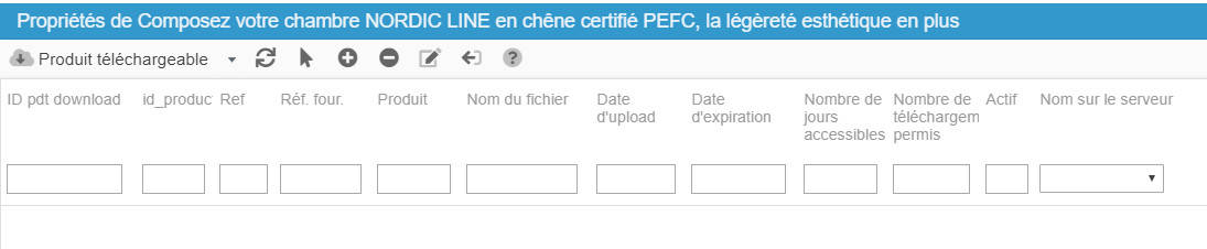 Pour ajouter un produit téléchargeable, sélectionnez tout d'abord le produit en question dans la colonne centrale, puis cliquez sur l'icône d'ajout  de la barre d'outils.