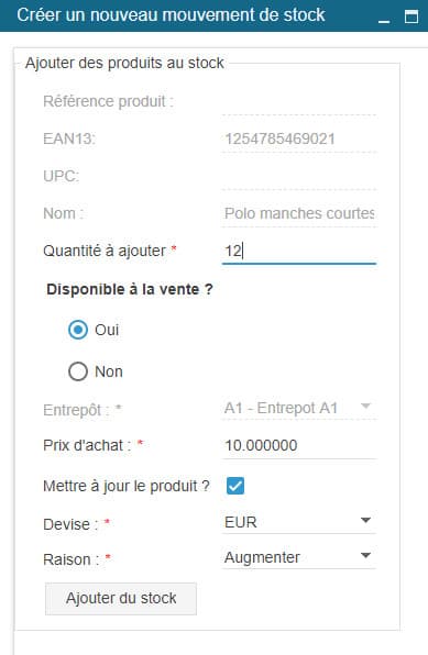 Remplissez ensuite les champs nécessaires dans le formulaire de mouvements de stock.