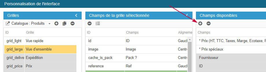 L'ajout de champs non natifs à Store Commander nécessite l'outil Personnalisation de l'interface, version PRO, inclus dans les plans+, et accessible depuis le menu Outils de l'interface Store Commander.