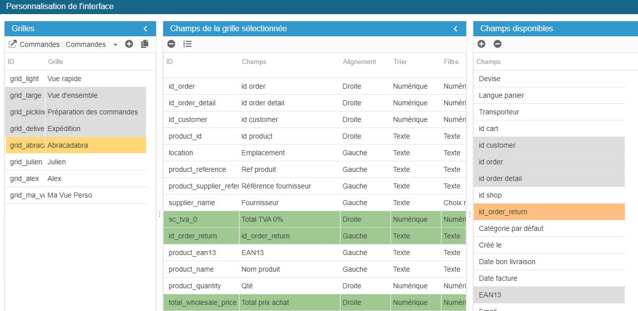 Dans l'interface du module, vous retrouverez différentes couleurs qui ont une signification particulière, pour une aide visuelle plus efficace.