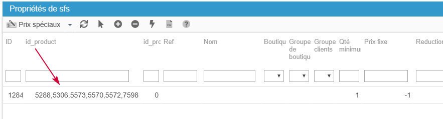 Affichez ensuite la grille des prix spéciaux depuis la colonne des Propriétés.