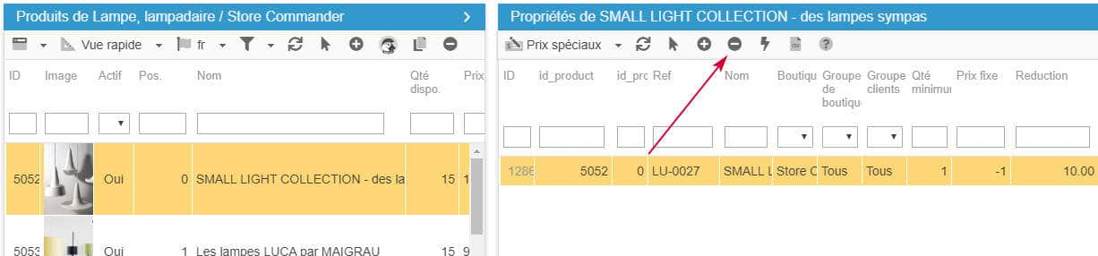 Pour supprimer vos promotions en masse, utilisez l'interface dédiée à la gestion des prix spéciaux (accessible à partir du menu Catalogue).