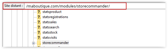 Dans la section ' Site distant', naviguez sur le répertoire /modules/storecommander/